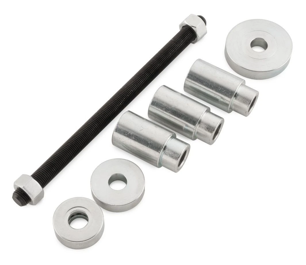 - Provides three necessary drivers to fit the main swingarm needle bearings